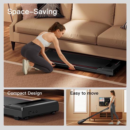 搭载2.5马力大功能电机,提供强劲可靠的性能,运行噪音仅40-65分贝,具有6个减震器静音缓震,跑步带防滑耐磨,舒适安全。40.2 x 15.4英寸宽大跑台,让您无拘无束的自由奔跑。配备精巧无线遥控,一键加减速,走停快慢,切换自如。配备LED显示屏,实时显示各种运动数据,方便及时调整节奏。小巧机身,内置滚轮,可平置于沙发或床下,节省空间不碍事。最大承重256磅。