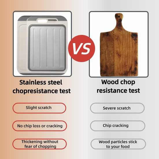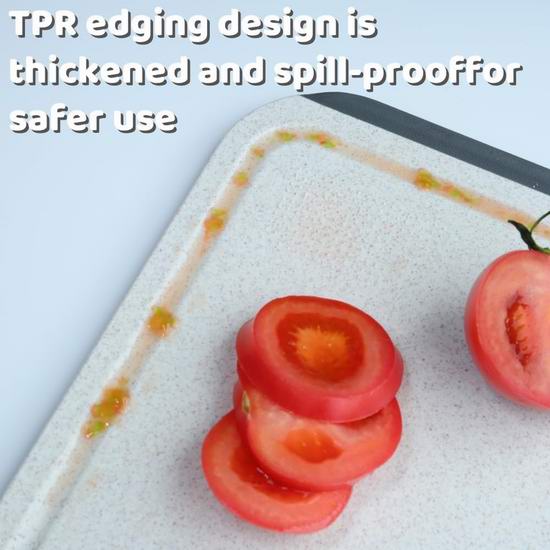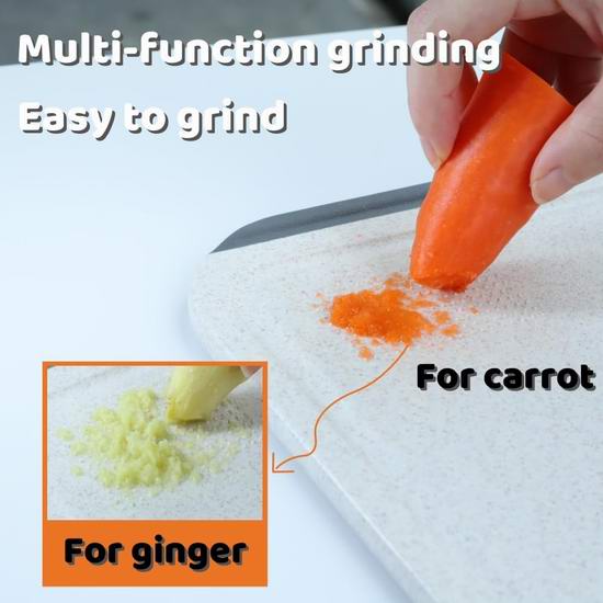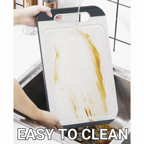 这款二合一双面切菜板,采用优质304不锈钢和麦秸秆pp制成。不锈钢面可用于快速解冻冷冻食品、切割生肉和熟肉,PP面用于切蔬菜、面包和水果。菜板内置榨汁槽,液体不会从深槽溢出,让厨房台面保持干净整洁。配备精细研磨区,可用于研磨蒜蓉/姜蓉,让您更轻松地准备各种食材。尺寸为 9.8 x 14.5 英寸,重 1.77 磅。清洁时,只需用温和的洗洁精和水进行清洗,或将其放入洗碗机中彻底清洗。