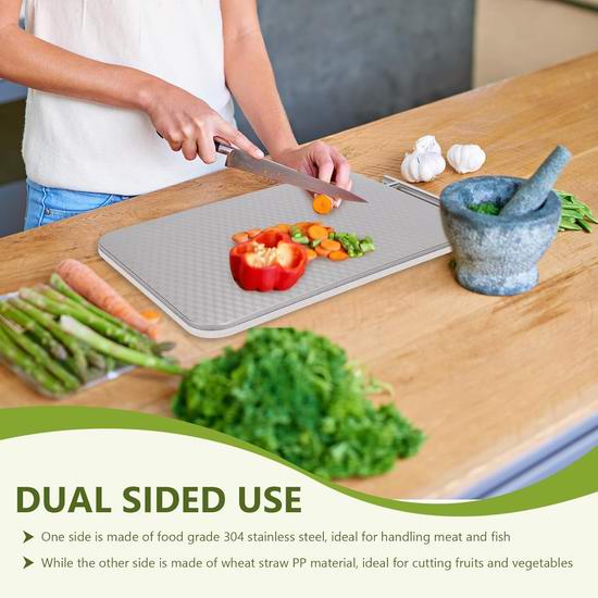 白菜价!历史新低!WODHMIEY 不锈钢+麦秸PP 双面菜板3.6折 9.99加元清仓!