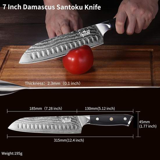 超级白菜!历史新低!千丰盛 7英寸 超锋利大马士革 三德刀2折 19.99加元包邮!