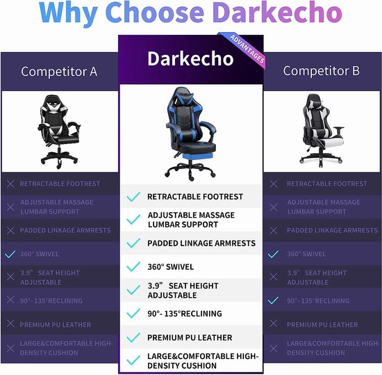 历史新低!Darkecho 人体工学 高靠背 可倾斜 电竞赛车椅/游戏椅/办公椅 159.99加元包邮!送按摩腰枕!2色可选!