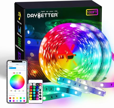 DAYBETTER  100英尺卧室LED灯带 支持App遥控  15.99加元(原价 18.89加元)