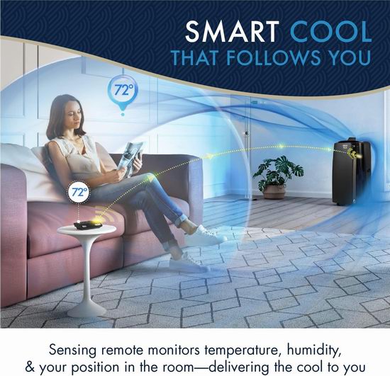 采用3合1设计,不仅可以作为制冷空调使用,还具备除湿和风扇功能,专为大房间设计,具有14000 BTU (ASHRAE)/8600 BTU (SACC)的制冷功率。采用Cool Surround技术,通过蓝牙监控遥控器周围的温度和湿度,实现精确制冷。其Arctic Whisper Extreme技术确保安静运行,而ECO Real Feel技术在保持理想温湿度平衡的同时,节省高达30%的能耗。带有手柄和轮子,安装简单,易于移动。可编程定时器和电动空气方向控制提供均匀的凉爽气流。可清洗过滤器确保空气洁净,易于维护。