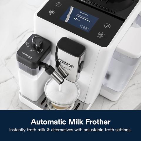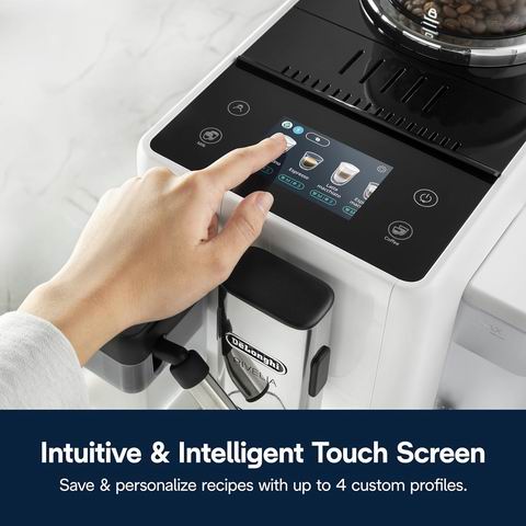 德龙 De’Longhi Rivelia 是一款带锥形磨豆器自动奶泡器全自动意式咖啡机支持一键完成研磨、定量、萃取与打奶泡,内置 18 种预设饮品(含热/冰拿铁、卡布奇诺、美式、馥芮白、浓缩及冰咖啡等),并可调节浓度、份量与额外萃取实现个性化定制;其亮点是双可拆卸 8.8oz(约 260ml)豆仓的“豆类切换系统”与 13 档研磨度,方便在不同咖啡豆(如深烘焙/低因)间快速切换;LatteCrema Hot 自动奶泡器支持自动清洁(亦可升级冷奶泡配件),配合引导式设置可保存理想研磨度/剂量/温度,同时提供 4 个智能用户配置文件与简约紧凑的意式外观设计,适合家庭多成员日常使用。