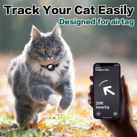 专为安全收纳Apple AirTag设计,宽度为0.4英寸,佩戴轻便。配有反光材质和弹性AirTag收纳袋,保护AirTag不易脱落。项圈采用安全脱扣设计,意外卡住时可让猫咪挣脱;由亲肤尼龙制成,长度可在8.66至13.78英寸间调节,并带有防水卡扣和铃铛,便于日常清洁与夜间寻找。