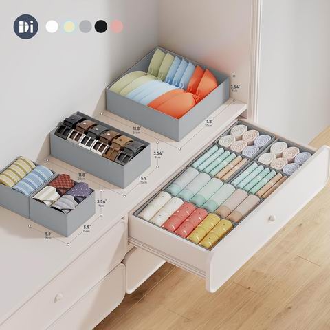 这款衣柜收纳盒和衣物收纳盒采用优质无纺布和加厚纸板,确保其坚固稳定。12 件套包含 4 个大储物盒(11.811.83.54 英寸)、4 个中型储物盒(11.85.93.54 英寸)和 4 个小储物盒(5.95.93.54 英寸),为您提供更多存储空间。抽屉整理器底部采用拉链设计,方便安装和使用,且可折叠平放,节省空间。适用于衣柜、卧室等场景,可存放胸罩、内衣、袜子、领带等各种物品。