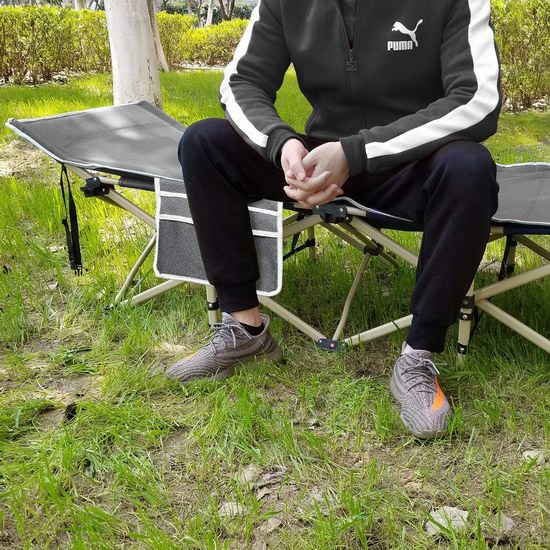采用防锈钢架结构,三层600D加厚牛津布面料制成,内置舒适软垫枕头,侧袋可用于存放手机、钥匙、水瓶等,坚固耐用,防水易清洁,可折叠式设计,方便携带,不仅可用于户外露营,家中来客时也可以作为临时睡床使用,适合体重330磅以内的人士使用。床面尺寸为190 x 67厘米。
