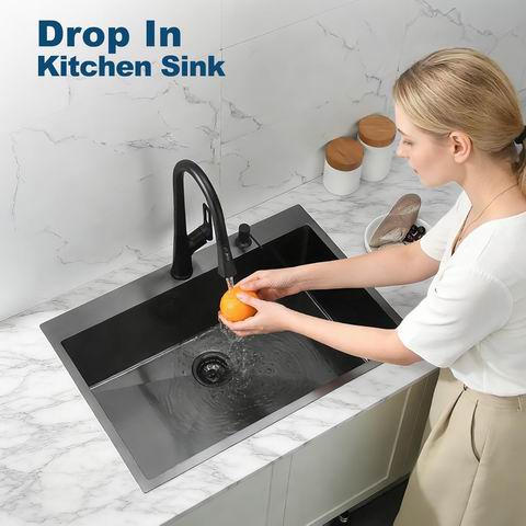 Doirteal 33英寸嵌入式黑色单槽厨房水槽(33×22×10 英寸)采用 1.5mm 厚 TRU16 16 号 T304 不锈钢打造,具备出色的抗凹陷、防锈与抗污性能,表面经过黑色纳米 PVD 涂层处理,耐磨且易清洁;内部尺寸 31×18×10 英寸,后置 3.5 英寸标准排水口,适配最小 36 英寸橱柜,大容量单槽可轻松容纳大件锅具。台上式安装设计便于 DIY 安装,R10 圆角兼顾美观与清洁便利。底部设有 X 型导流槽与倾斜底板,实现快速排水,并配备厚实隔音垫与防冷凝涂层降低噪音与水珠凝结;随附底部滤网、沥水架和滤水器组件,提升日常使用便利性。
