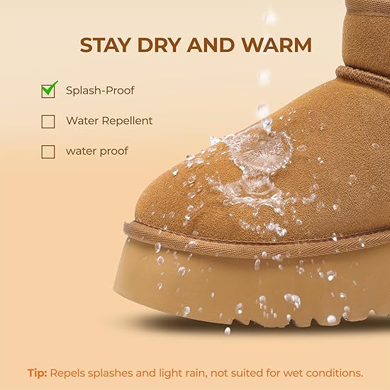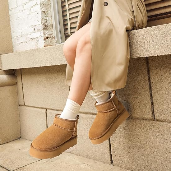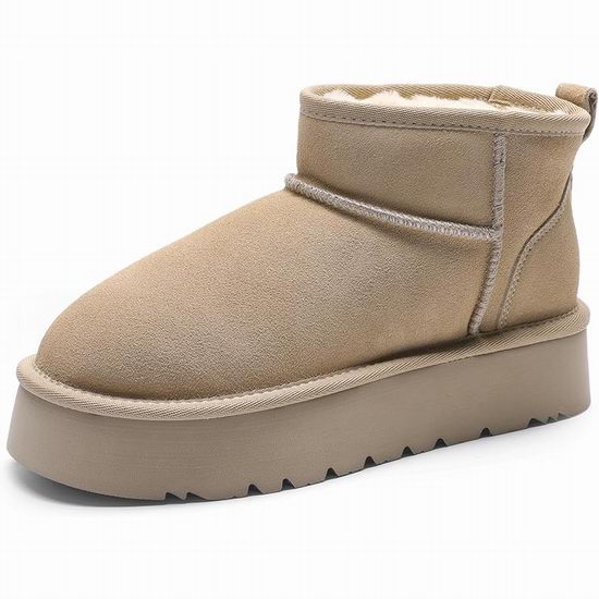 这款雪地靴由100%优质绒面革真皮制成,手感奢华且耐用,防水防溅。经典厚底设计采用3.81厘米的EVA厚底,不仅能修饰腿部线条,还提供缓冲效果。17毫米厚的柔软人造毛皮内衬,让双脚倍感舒适。雪地靴采用低底设计,既能巧妙增高,又不会造成脚踝扭伤。采用EVA外底和5毫米厚的仿毛皮记忆海绵鞋垫,有效减少冲击力,每一步都如同漫步云端。