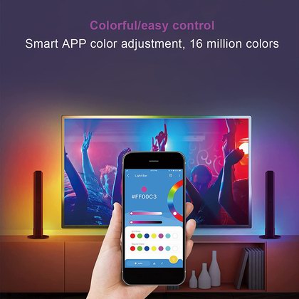 这款蓝牙智能氛围灯,支持手机App遥控,具有多种预设模式,提供1600万种颜色,可产生特殊的照明效果,具有4种音乐同步模式,支持DIY配色,创造出浪漫的氛围,获得身临其境的观影或游戏体验。通过视觉上延长内容,让您感觉自己是其中的一部分。