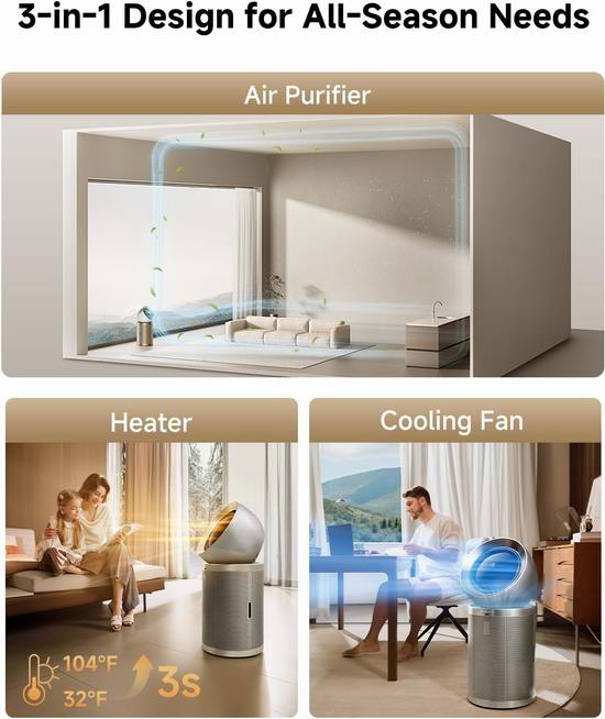配备7个高精度传感器,持续监测室内空气质量。您可以在液晶显示屏上或直接在 Dreame App 中查看实时空气质量数据并进行调节。采用三合一设计,内置制冷系统、加热系统和空气净化器,可在任何天气下增强可用性和定制空气舒适度。根据需要选择自动模式、舒适模式或宠物模式。宠物模式可增强气流,有效吸除毛发,是宠物家庭的理想之选。此外,您还可以调节风扇速度和屏幕亮度,享受个性化的使用体验。在舒适模式下,净化器运行噪音仅为 32 分贝——足够安静,可以确保您、您的孩子和宠物都能安然入睡。