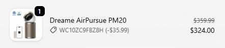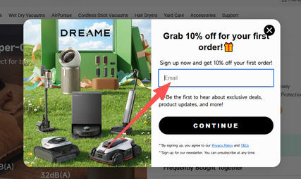 Dreame网店销售,原价:1199.99加元,现价: 359.99加元,在商品页面的弹出窗口登记email地址(如果误关了窗口,可请点左侧“Unlock 10% Off”浮动按钮),送额外9折优惠码,折后324加元包邮。点击进入订购页面。