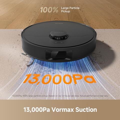 DREAME D20 Plus 扫地机器人主打13,000Pa 超强吸力防缠绕双刷头,能更高效清理宠物毛发与地毯/硬地板上的灰尘碎屑;配备自动集尘基站5L集尘袋官方称可实现最长约150天免手动倒尘;同时支持吸尘拖地二合一,500ml尘盒+350ml清水箱并提供32档湿度调节,满足不同拖地需求;LDS智能导航可编辑地图提升覆盖与路径规划效率,5200mAh电池保证续航,并支持App与语音控制,可联动Alexa、Siri和Google Home进行清洁设置与指令操作。