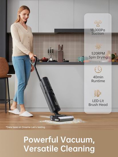 Dream H13 Pro 干湿两用真空吸尘器拥有强劲的18,000 Pa吸力,能够轻松处理干湿污渍。搭载100,000 RPM电机,以520 RPM的速度拖地,使清洁更快速且无条纹。尽管机器较重,但智能GlideWheel动力系统使其在前后移动时依然平稳自如,配备两个后置电机,能够轻松清洁边缘和角落。该吸尘器还具备140°F高温自清洁功能,有效去除油污和异味,保持地板洁净光亮。刷子通过顺时针和逆时针旋转实现自清洁功能,结合梳齿状弹性刮刀,轻松解开毛发缠结。其双重边缘清洁设计,让您轻松清理踢脚板和狭窄角落,确保全方位的深度清洁。