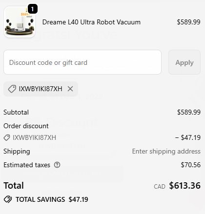 Dreame网店销售,亚马逊同款上市价:2099.99加元,现价:589.99加元;