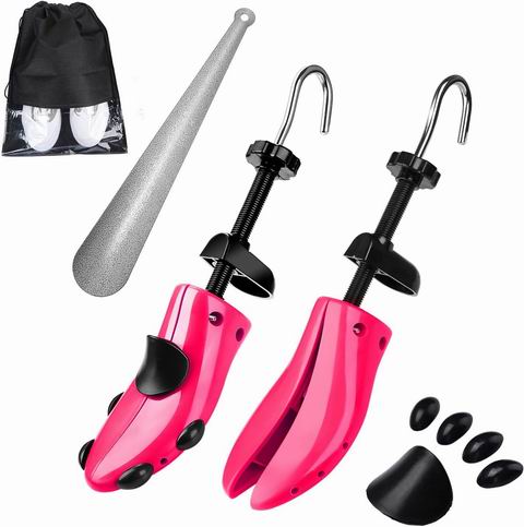 这款四向可调节鞋撑,通过旋转旋钮和挂钩可同时调节长度与宽度,以撑大新鞋或过紧的鞋履(适用于平底鞋、运动鞋等,不适用于靴子)。它采用ABS塑料与钢轴材质,耐用可靠,套装内含2个鞋撑、8个矫正垫、2个增高垫、1个鞋拔和1个鞋袋,旨在缓解拇囊炎、鸡眼等足部问题带来的压迫感,建议每次放置至少24小时以达到理想效果。