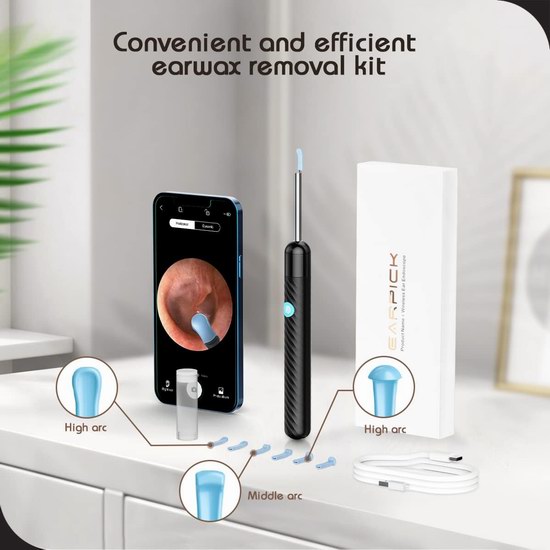 这款掏耳神器内置wifi,可连接智能手机或平板电脑,即时将镜头所拍摄的影像传送到手机屏幕之上,针对性清除耳道内的污垢。镜头可拍摄1080P高清画面,内置6颗LED照明灯,确保视野清晰,充满电后,续航可达70分钟,配备多个硅胶耳勺套。