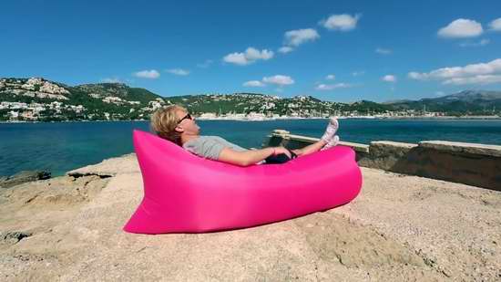 采用降落伞面料制成,双层设计,耐撕裂和穿刺,触感舒适,室内户外均可使用,草地,沙滩,岩石等各种地面条件都不在话下。使用时,只需将袋口迎着风几秒钟即可快速完成充气,在家也可以用电吹风冷风档吹气,最大承重400磅。