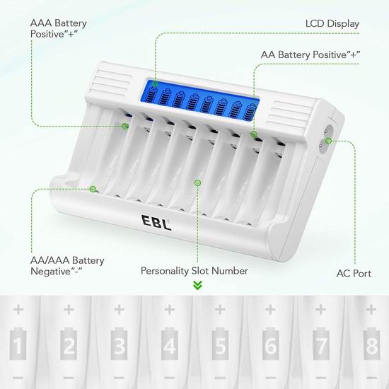 历史新低!EBL 8通道电池充电器+4只AA+4只AAA镍氢充电电池套装5折 22.93加元包邮!免税!