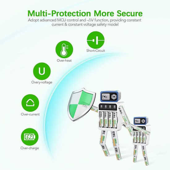 EBL 4通道电池充电器+8只AA镍氢充电电池套装6折 17.98加元!