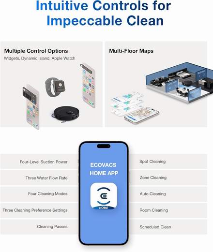 一体式基站支持70℃热水清洗、自动排空、自动加水和热风烘干。其过滤系统可提供长达 150 天的免维护运行,而持久耐用的固体清洁剂可提供长达 30 天的深度清洁,确保用户获得轻松高效的体验。“地毯优先”功能可防止交叉污染,使用干燥的抬高拖把优先清洁所有地毯。它会自动检测地毯类型,并在“仅吸尘”、“禁止进入”、“免下车”和“在地板上扫”等模式之间切换,以实现最佳清洁效果。