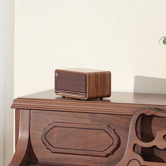 MP230的灵感来自 1950 年代和 1960 年代的老式收音机,钢琴键按钮的完美复制品与传奇调色板和精品网眼相得益彰。MDF木质外壳比塑料更薄,比金属更温暖,让声音温柔地流入美丽的世界。立体声音响系统由两个48mm全频驱动单元,加上集成的大尺寸双无源辐射器组成;紧凑而强大。采用双工设计 2600 mAh 大容量锂聚合物电池,每次充电可支持蓝牙播放长达10小时。蓝牙5.0提供更快的传输、更低的电池消耗、更有效的抗干扰、简单的连接和免费的播放。除蓝牙输入外,其他支持的输入源包括 AUX、声卡和 TF 卡。带有球形接触面的加厚脚垫可提供极佳的振动隔离,并有效防止剧烈运动。