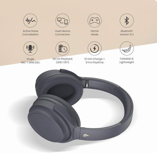 历史新低!Edifier WH700NB 漫步者 无线主动降噪头戴式耳机4.3折 29.99加元!续航长达68小时!