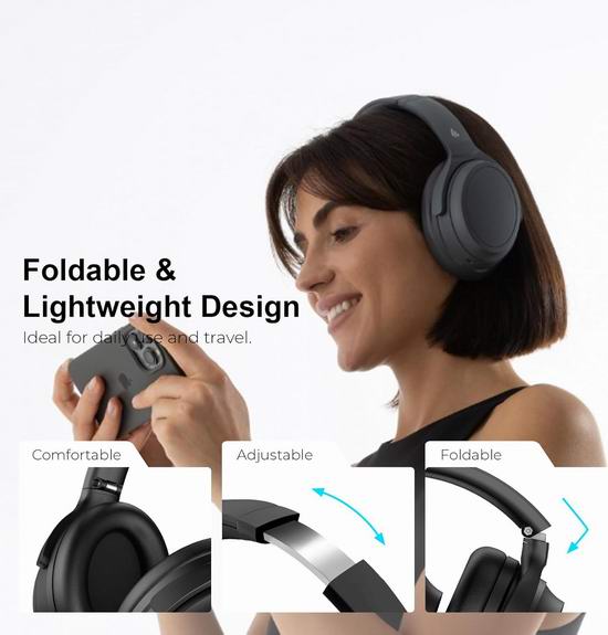 借助主动降噪技术,沉浸于纯净音质之中。或者,切换到环境音模式,无需摘下耳机即可感知周围环境。采用单麦克风和 DNN 降噪技术,即使在嘈杂的环境中也能确保通话清晰。可轻松同时连接和切换两台设备,确保您无论是在听音乐、开会还是玩游戏,都能始终保持连接。游戏模式下 0.08 秒的超低延迟确保流畅沉浸的游戏体验,而其轻巧可折叠的设计使其成为日常使用和旅行的完美之选。续航时间长达68小时,开启主动降噪功能后,续航长达45小时。充电10分钟,即可享受8小时续航。