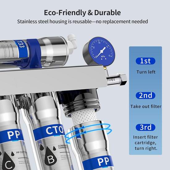 历史新低!EIREE H502B 0.01微米 不锈钢超滤净水器6折 119.99加元包邮!保留有益矿物质!