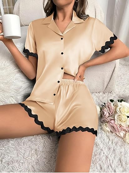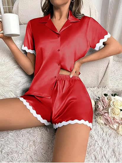 这款超柔软丝滑睡衣套装采用95%涤纶+5%氨纶面料,透气舒适亲肤。采用撞色设计,为您的家居生活增添一抹时尚活力。全纽扣设计,穿脱方便。宽松版型,让您更舒适地放松。
