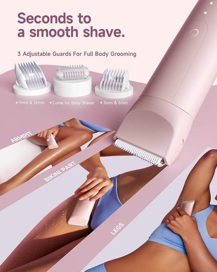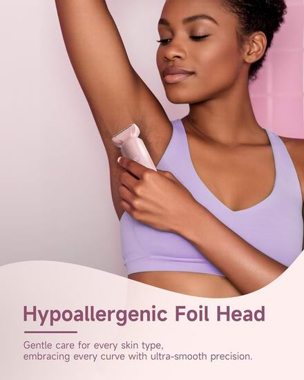 这款电动二合一脱毛器专为女性设计,能有效去除比基尼线、阴部、腿部和腋下等身体各处的多余毛发,配备两个可拆卸刀头和两个限位梳,让您能够精准舒适地定制专属的修剪体验。采用低过敏性陶瓷刀片,即使是最敏感的肌肤也能享受温和顺滑的剃须体验。能有效防止刮伤和划伤,让您的剃须过程舒适、快速无痛。两个可调节的导梳(3-6毫米,9-12毫米)让您可以根据需要调整修剪长度,保持整洁美观。剃须刀完全防水,干湿两用。清洁也非常方便,只需在流水下冲洗即可保持最佳状态。内置高性能锂电池,续航时间长达90分钟。