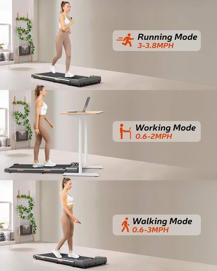 搭载2.5马力强劲电机,最大承重可达265磅,低噪音运行,不会影响家人。速度范围 0.6 英里/小时至 3.8 英里/小时。配备LED显示屏,可以查看速度、距离、时间和卡路里消耗量。随附的遥控器可让您在不中断运动的情况下调节速度并启动/停止走步机。设计紧凑,尺寸为48*20.5*4.6英寸,可轻松放置在沙发、床或桌子下方。内置滚轮设计,方便抬起和移动。