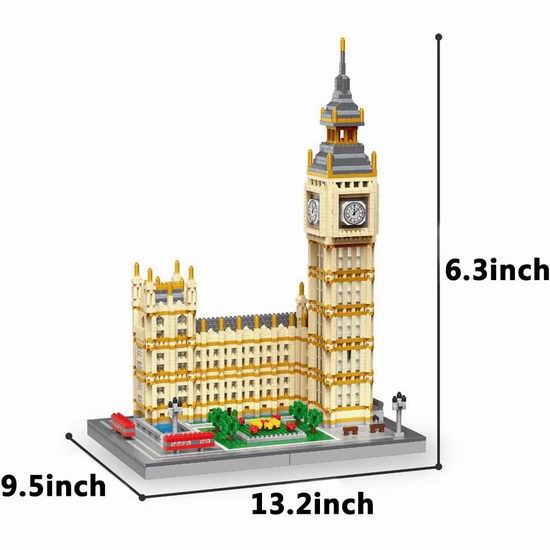积木采用环保安全材料制成,无毒无味,表面光滑,色彩鲜艳,永不褪色。套装包含3466个颗粒,可搭建出伦敦大本钟建筑模型。这个大本钟造型精致,附有详细的说明。