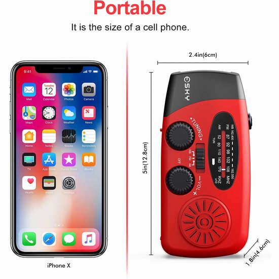 这款多功能收音机采用紧凑型设计,方便携带,支持太阳能、USB充电和手摇式发电,内置1000mAh锂电池,可为智能手机提供移动电源,内置AM/FM收音机,可接收NOAA天气预报预警电台,前侧灯头内置LED照明灯,是居家应急、户外活动、野营、徒步旅行、钓鱼、打猎等理想之选。
