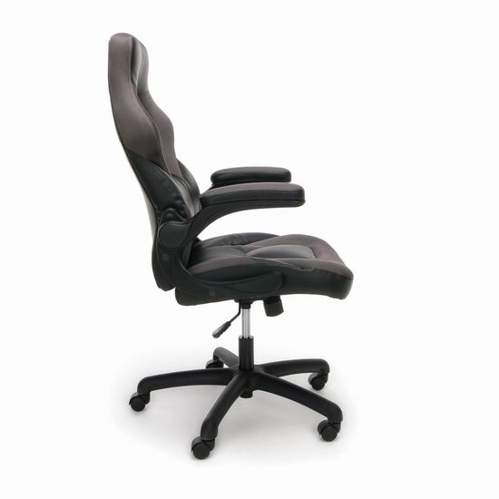 采用赛车座椅风格设计,外形时尚,选用优质SofThread皮革,搭配灰色网纹布艺面料,柔软舒适又透气,可调节倾斜度、高度,扶手可旋转和抬起,最大承重250磅。