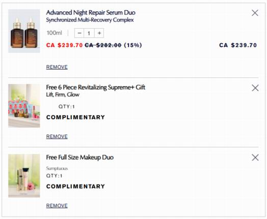 满240加元,使用折扣码:EYECREAM 送正装小棕瓶眼霜;或使用折扣码:HANDCREAM 送正装奢宠白金护手霜(此赠品不可与会员折扣叠加),所有礼包总价格高达419加元;