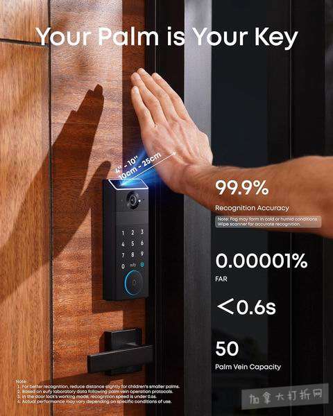 史低价!新款eufy FamiLock S3 掌纹识别 Wi-Fi 智能锁 329.99加元(原价 479.99加元)