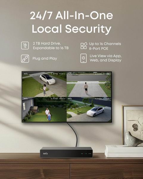 • 内置 2TB 硬盘(可扩展至 16TB),支持 24/7 连续录像;PoE 供电即插即用。