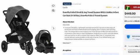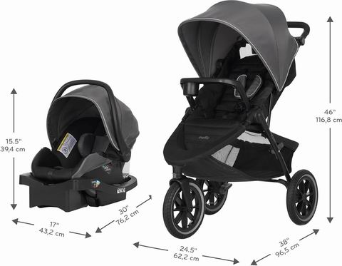 史低价!Evenflo Folio3 慢跑旅行系列 婴儿推车+LiteMax 35 婴儿汽车安全座椅 299.99加元(walmart 原价 449加元 )
