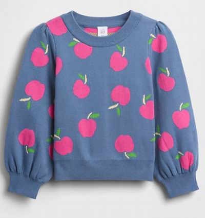 苹果图案泡泡袖毛衣12.48加元(原价 54.95加元)