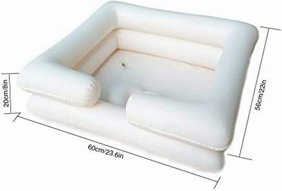采用重型PVC塑料支撑,柔软轻便耐用,双层气囊设计,防止洗发时水份飞溅及溢出,配备花洒水袋和淋浴头,洗头盆内置排水软管,可快速排走洗头水泡沫及水份,套装还包含2个防水垫和1个打气筒,适合老人、孕妇或小孩使用,也可以用作美发水疗盆,或户外洗头盆使用。为延长使用寿命,使用时避免接触硬物。