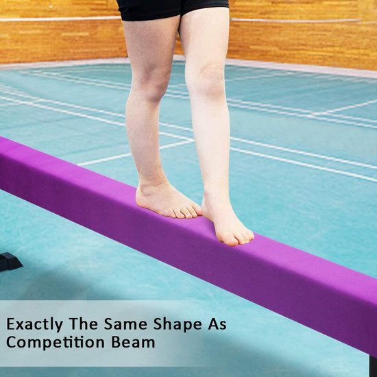 此款平衡木具有高低两种使用模式,高模式高度可在18-24英寸之间调节,低模式高度为7英寸,宽度4英寸(10厘米),长度8英尺(2.4米),可用于练习各种跳步、转体、波浪、平衡、造型及技巧翻腾等动作。