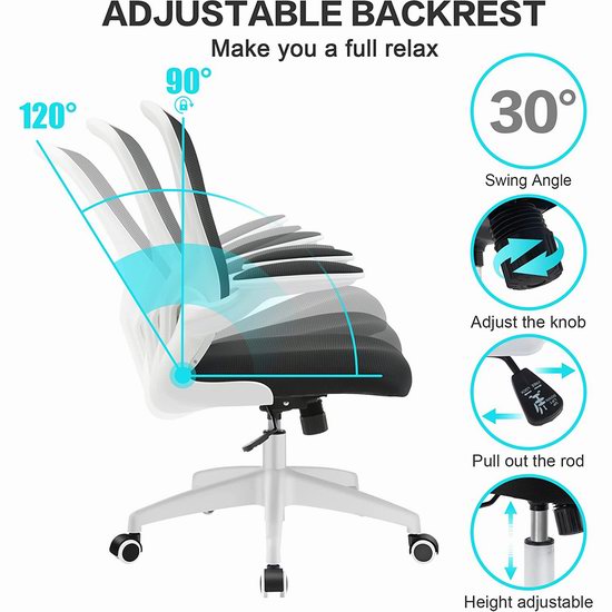 此款办公椅符合人体工学设计,贴合背部自然曲线,网眼靠背,通风透气,坐垫内置柔软的高密度天然海绵,符合人体臀部曲线,扶手可上下翻转90度,靠背倾斜度和座位高度可调。