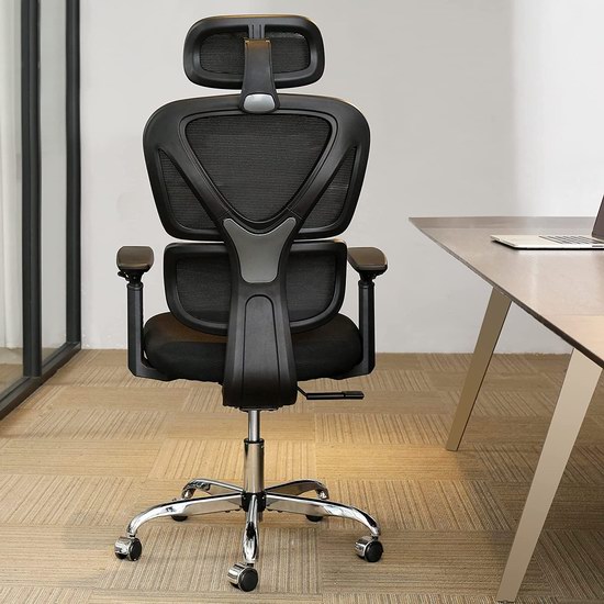 符合人体工学设计,Y型靠背支撑,贴合脊椎自然曲线,充分支撑背部,帮助释放脊椎和肩部压力,靠背可在90/120/135度调节。网眼靠背,通风透气,柔软的高密度天然海绵坐垫,符合人体臀部曲线,升降头枕,扶手可调节3D位置。