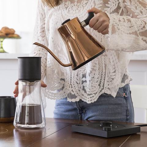 采用优质 304不锈钢与抛光铜材质,容量 0.9升,搭载 1200瓦快速加热元件,支持精准温控和 60分钟保温功能。其细长尖嘴设计与平衡手柄确保稳定精准的倾倒水流,配合 LCD 显示屏和内置冲泡秒表,让手冲咖啡与泡茶更专业高效。简约美学与强劲性能兼备,是追求品质冲泡体验的理想之选。