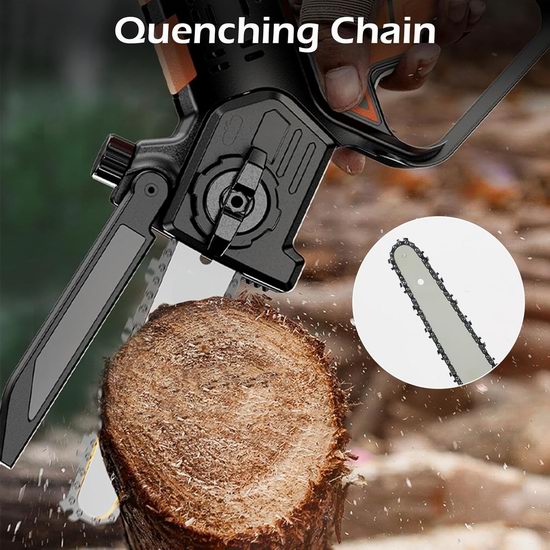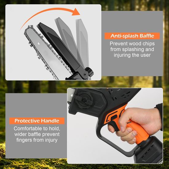此款无绳链锯配备8英寸锯片及锯链,经过深度淬火处理,搭载自动润滑系统,机身轻巧,便于携带和操控,搭载大功率升级铜芯电机,空载转速4000r/min,足以应对直径16厘米内的原木,适用于切割木材和树枝,配备2个电池和2个锯链。