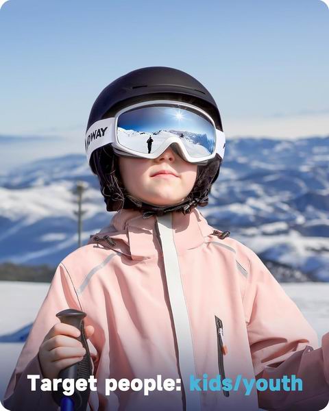 采用双层防雾镜片并提供 100% UV400 防护,外层加硬提升抗刮性,确保雪地运动视野清晰且降低眩光与紫外线伤害;柔软 TPU 镜框搭配三层透气泡沫提升贴合与保暖,并在碰撞时提供缓冲;可调节防滑绑带含硅胶防滑条,兼容大多数儿童与青少年头盔且不易滑落;OTG 镂空设计可罩在眼镜外,配合专业通风系统加速排湿进气以减少起雾,同时支持售后退款或换新服务。