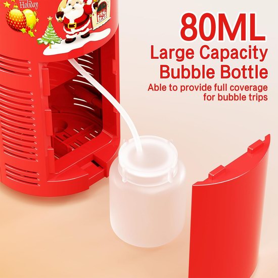 此款泡泡机采用礼花外形,内置电机,一键自动吹泡泡,每分钟可产升18000+个气泡,营造出类似烟花的绚丽效果,80ML泡泡液可持续吹20分钟泡泡,内置圣诞快乐和生日快乐两首歌曲。