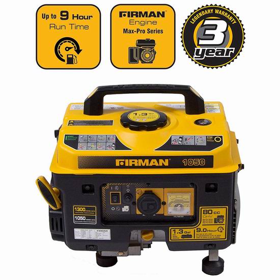历史新低!Firman P01001 1300瓦 便携式汽油发电机 198加元!