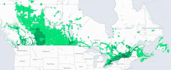 Fizz Mobile的信号覆盖了加拿大所有主要人口居住区: